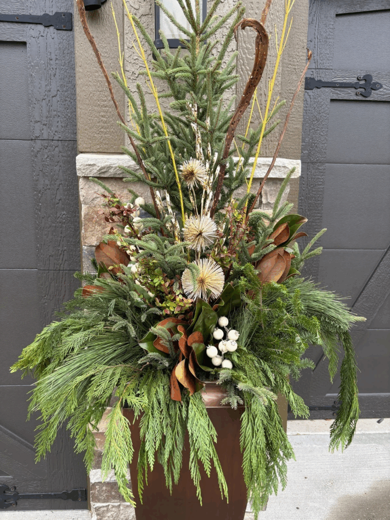 Creating winter planters can seem like a daunting task to those of us who are not design gifted by nature. Luckily, there are some basic principles that can help the most non-creative of us put together a spectacular outdoor display that ushers in the holidays and with just a few minor adjustments now and then can bring cheer to the long winter months.