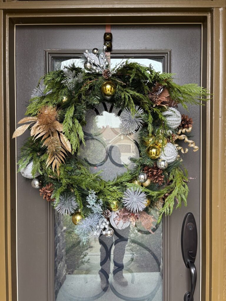 The silver and gold accents harmonize beautifully with the door frame.