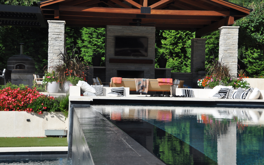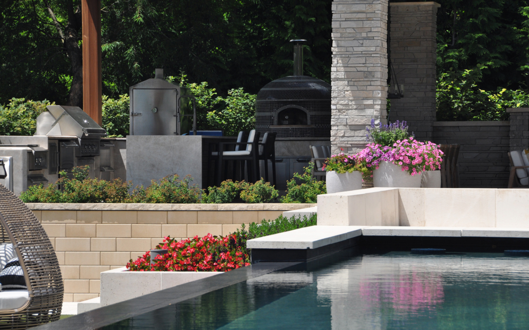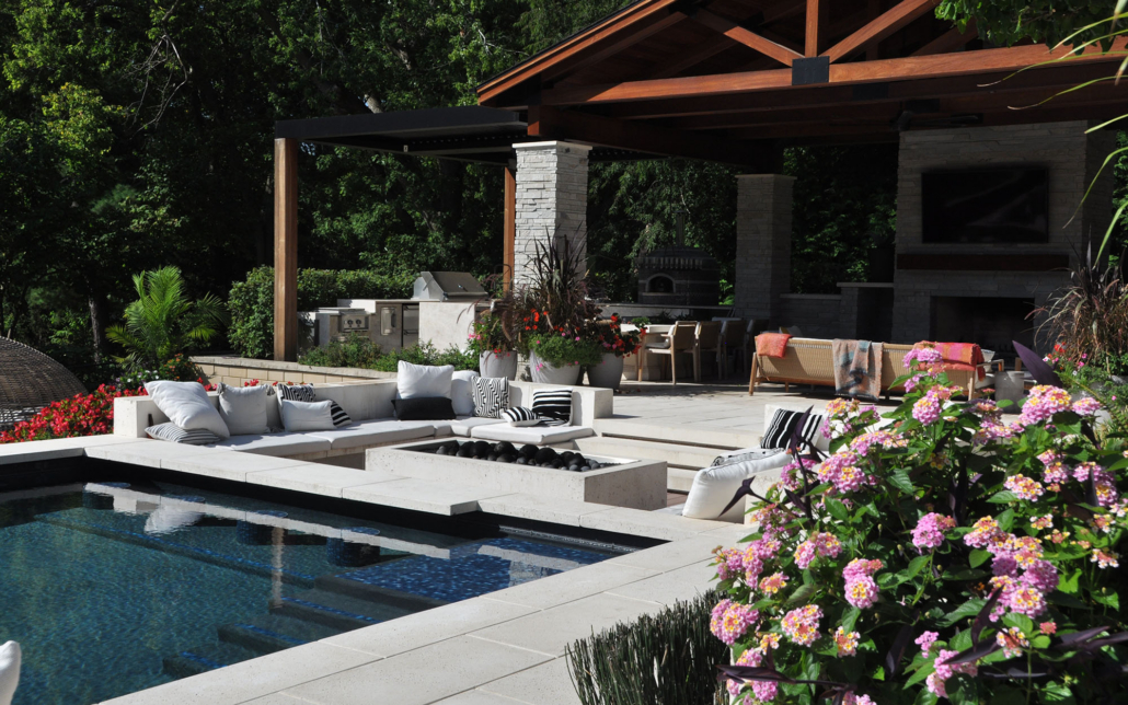 A fully integrated outdoor living environment designed for both relaxation and entertaining. Layered hardscape, water features, and planting elements come together to create a seamless extension of the home with a refined, resort-style feel.