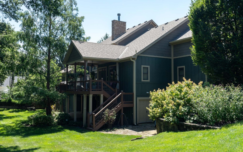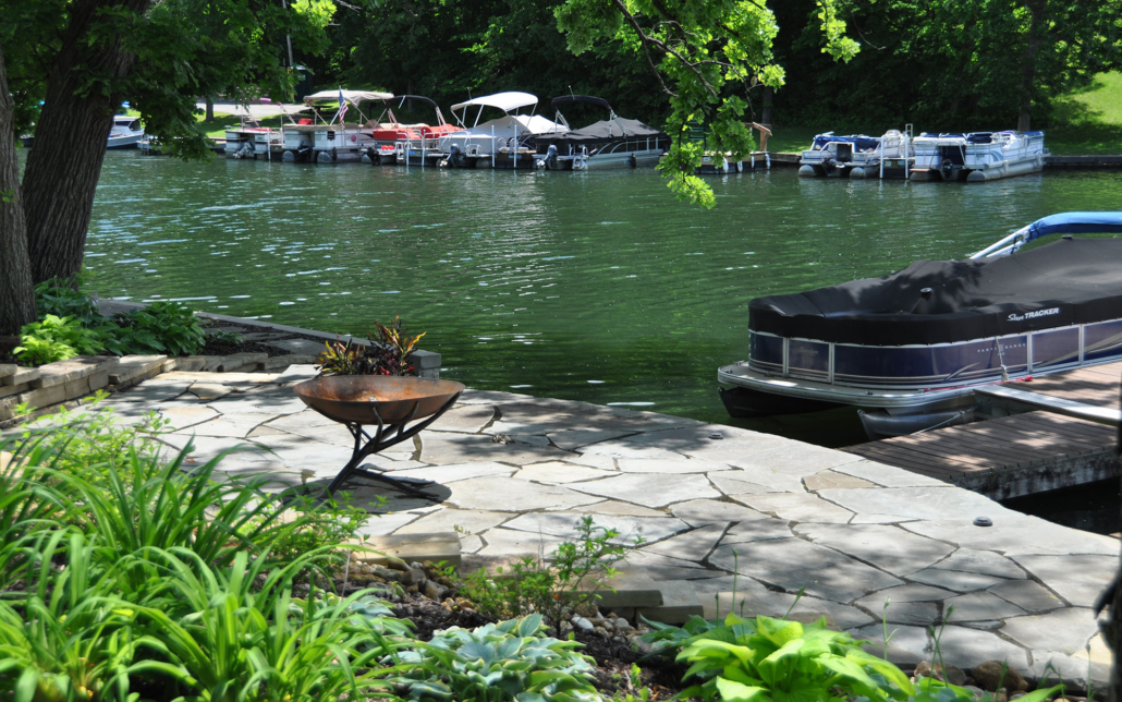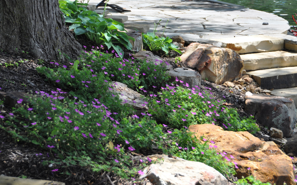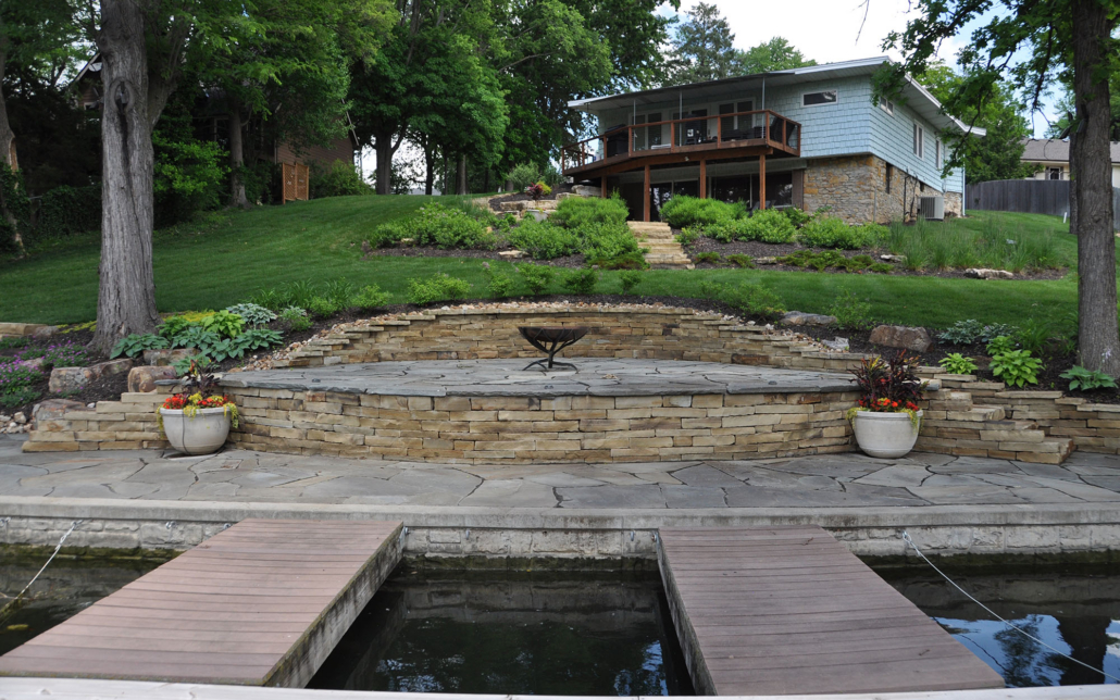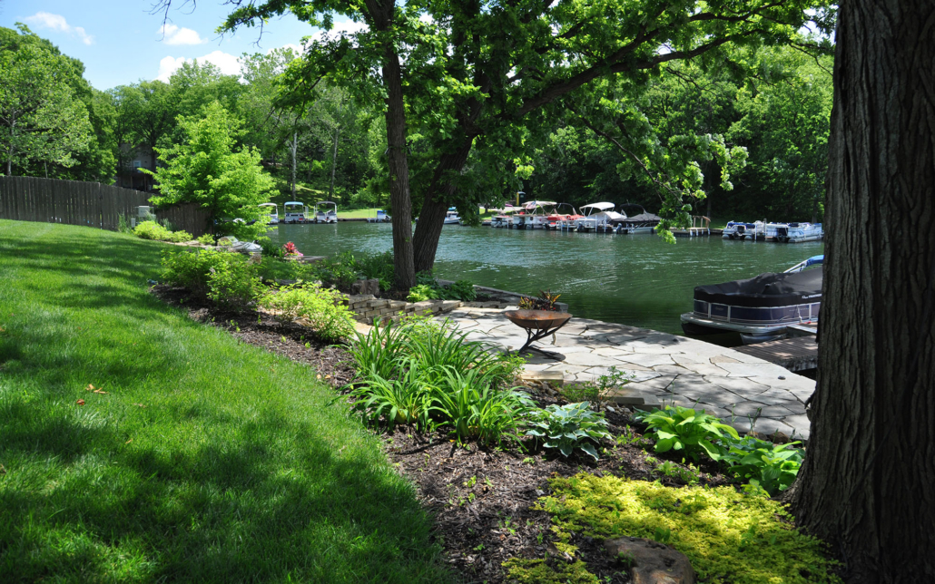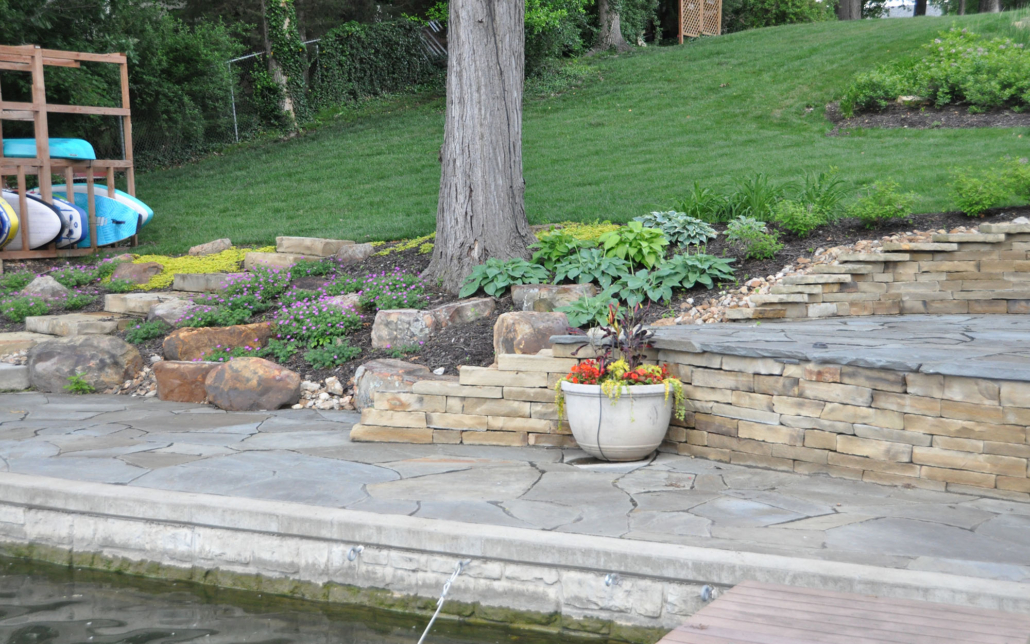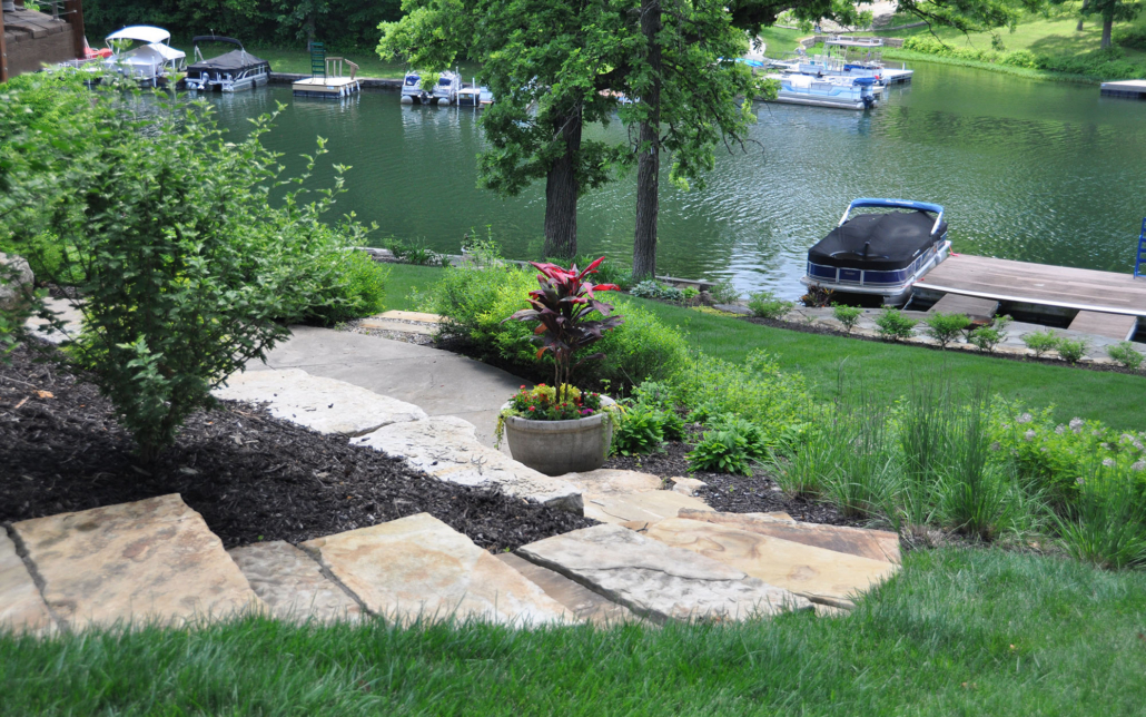 A thoughtfully designed lakeside landscape that enhances both access and natural beauty. Stone pathways, retaining elements, and layered planting work together to navigate elevation changes while creating a seamless connection from the home to the water.