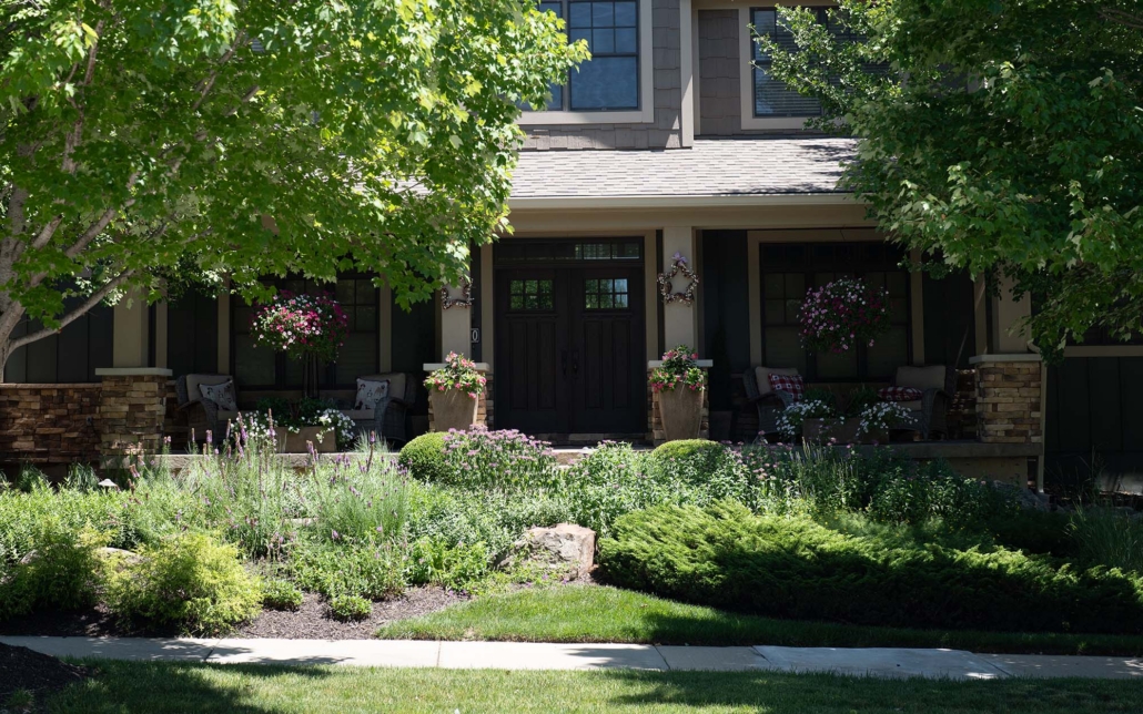 A thoughtfully layered planting design that enhances curb appeal and creates a welcoming approach to the home. Seasonal color, texture, and structure were carefully integrated to complement the architecture and provide year-round interest.